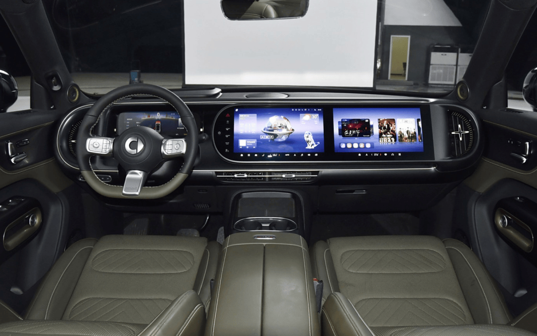 配置方面,L2级驾驶辅助、全车隔音玻璃、AMD V2000车机芯片、前排电动座椅+加热等都是标配,次低配又配上了前排通风、按摩和后排加热,再往上还有高阶的城市和高环智驾。这样的配置水平,已经和中国品牌的高端纯电SUV看齐。