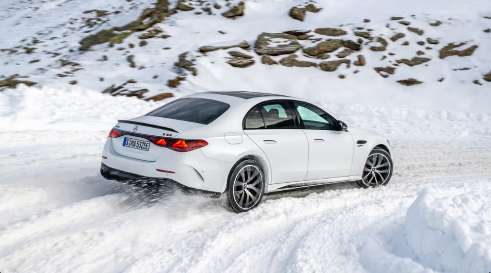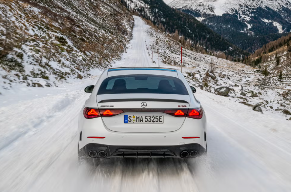 如果要找一款能在一侧是陡峭悬崖、另一侧是巨大岩石的蜿蜒积雪山路上行驶的理想车型,一辆重达超 2.2 吨、拥有 604 马力的奔驰车,乍一听似乎不太靠谱。然而,奔驰全新的 AMG E53 4Matic + 在被大雪覆盖、抓地力极低的狭窄道路上,却展现出了非凡的实力。在这样的路况下,很多普通的运动型轿车可能早就失控打转了。