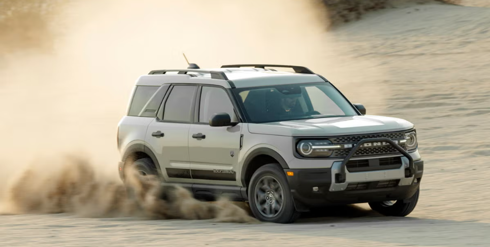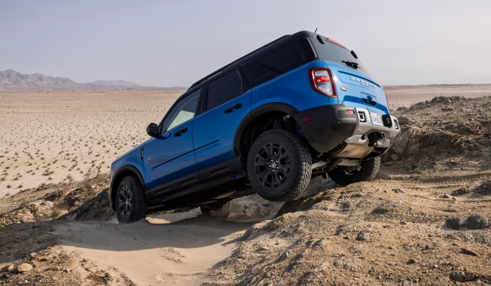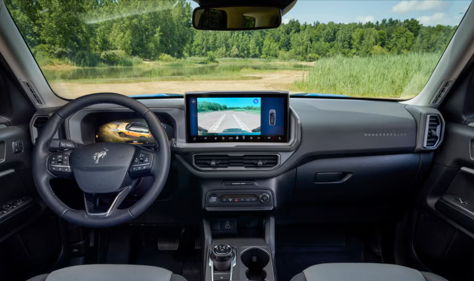 2025 款 Bronco Sport 全系还有其他升级,包括换装更大的 13.2 英寸信息娱乐屏幕,车内增加了一些拉手,车顶控制台上还配备了辅助开关,可连接外部配件。几乎所有配置版本现在都提供越野套件,入门级的 Big Bend 车型包含全地形轮胎、底盘护板、拖车钩等越野配置。