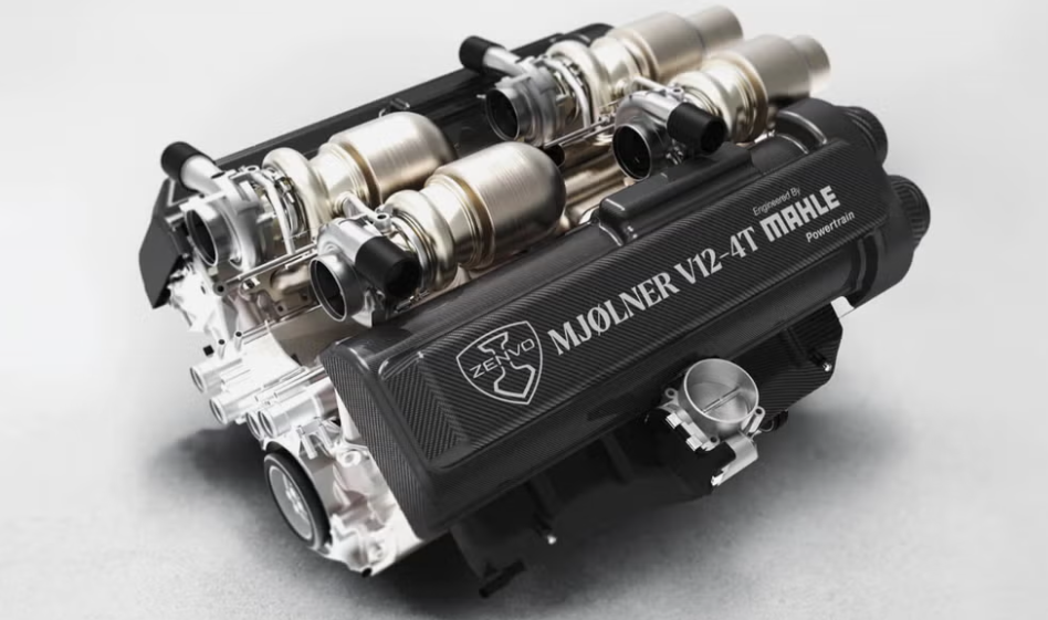 这款全新的 12 缸发动机排量为 6.6 升,配备不少于四个涡轮增压器,动力表现堪称雷霆万钧。其红线转速达到 9800 转,仅发动机自身就能输出 1250 马力,再搭配由三个电动机组成的混动系统,额外增加 600 马力。全油门加速时,它的轰鸣就像洛基踩到乐高积木时的尖叫一样引人注目。Mjølner V12 发动机是 Zenvo 与德国发动机专家马勒合作开发的成果,运用了马勒在模块化发动机技术和点火系统方面的专业知识。它采用马勒所称的 “喷气点火” 技术,通过预燃室点火引发燃烧,进而点燃气缸内的混合气体,而非使用传统的火花塞。Zenvo 表示,这款 V12 发动机能够使用合成燃料,并且通过在空燃比为 1 的状态下运行,符合目前所有严苛的排放法规。四个涡轮增压器都布置在发动机的 V 型夹角内,这种布局在奥迪、宝马和梅赛德斯 – AMG 等品牌的发动机上也有应用,不过它们通常只配备一到两个涡轮增压器。这样的设计能避免排气和进气系统过于庞大,因为这台发动机需要安装到 Zenvo 即将推出的超级跑车 Aurora 纤细的碳纤维底盘中。Aurora 将推出两个版本:一款是全轮驱动的公路版车型,可实现最大功率输出;另一款是后轮驱动的赛道版车型,电动辅助功率稍低,专为赛道驾驶调校。