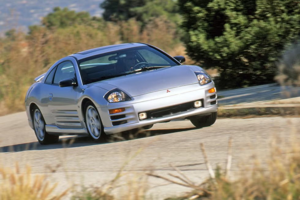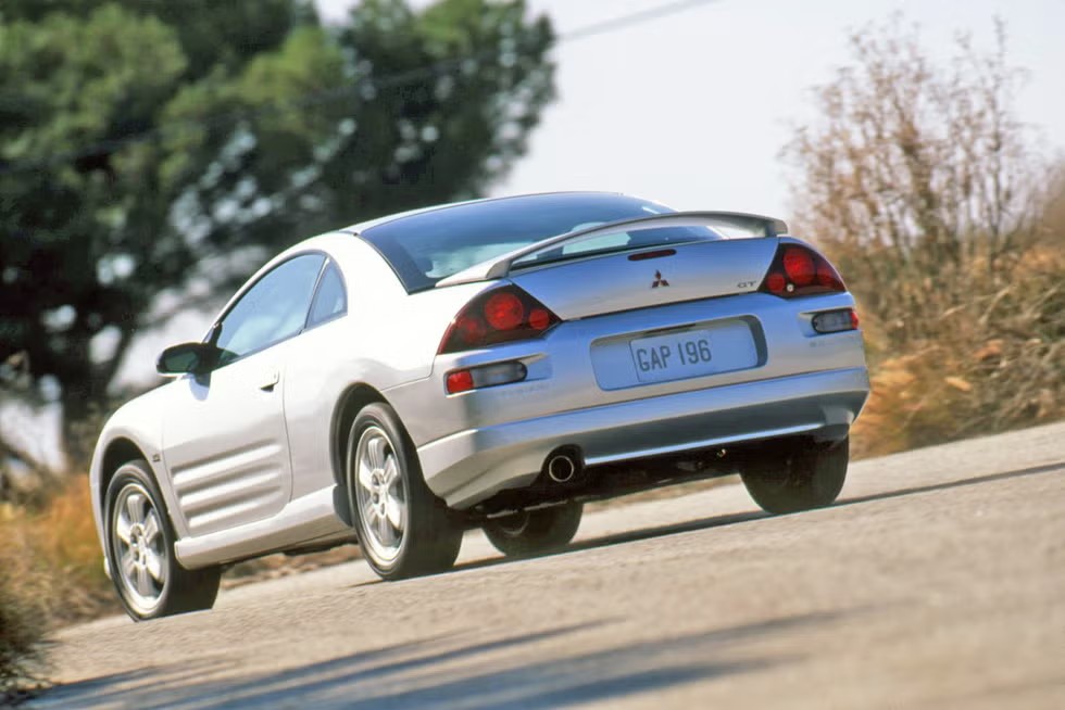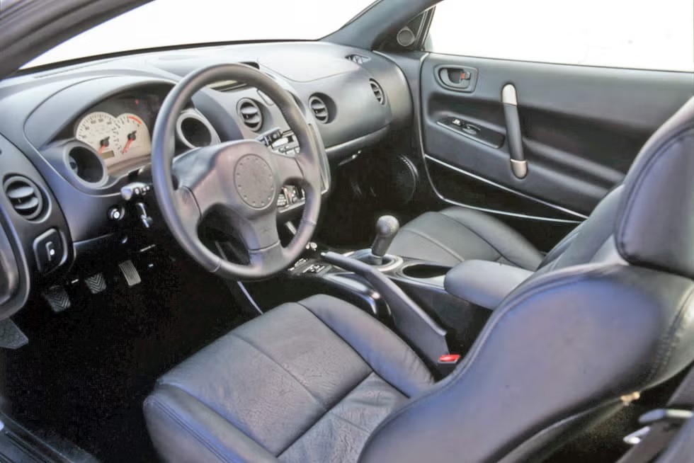 新款伊柯丽斯的外观设计独具特色,与老款圆润流畅的线条截然不同。其设计灵感直接来源于三菱在 1998 年底特律和纽约车展上展示的 SST 概念车,包括轿跑版和敞篷版。新款伊柯丽斯独特的梯形大灯、线条凌厉的前脸造型,使其极具辨识度。就连车尾不规则形状的尾灯设计,也令人眼前一亮。从侧面看,新款伊柯丽斯的轿跑风格比老款更明显,但依然保留了掀背式车身设计,以确保灵活的载物空间。尽管新款伊柯丽斯的尺寸仍小于本田 Prelude,但相比老款车型,车长增加了约 7.6 厘米,车高增加了约 5 厘米,车宽也略有增加。车身尺寸的增大直接体现在车内空间上,尤其是后排腿部空间。老款车型的后排空间狭小,成年人只能侧身挤在后排;而新款伊柯丽斯能够轻松容纳两名正常身材的成年人。不过,他们的头部依然会贴近后车窗,膝盖也会抵在前排座椅靠背上。前排座椅的乘坐感受与老款车型相当,但内饰设计借鉴了 SST 概念车的双仪表台风格。一个新颖的设计是,收音机显示屏被设置在仪表台顶部,而各种控制旋钮和按钮则保留在传统位置。车内音响系统提供带四碟 CD 的内置换碟机作为选装配置,整体配置水平也有所提升。例如,电动车窗成为全系标配。