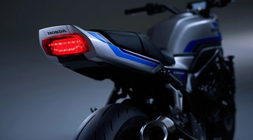 外观方面,CB1000F 完美复刻了 1979 年起的 CB750F 风格,车尾的鸭尾造型搭配大型矩形尾灯,方形油箱肩部硬朗,中央凸起部分设置加油口。车头部分,圆形大灯搭配一圈 LED 日间行车灯,现代感十足,双喇叭设计也沿袭了 CB750F 的经典元素,并在历代车型中传承至今。