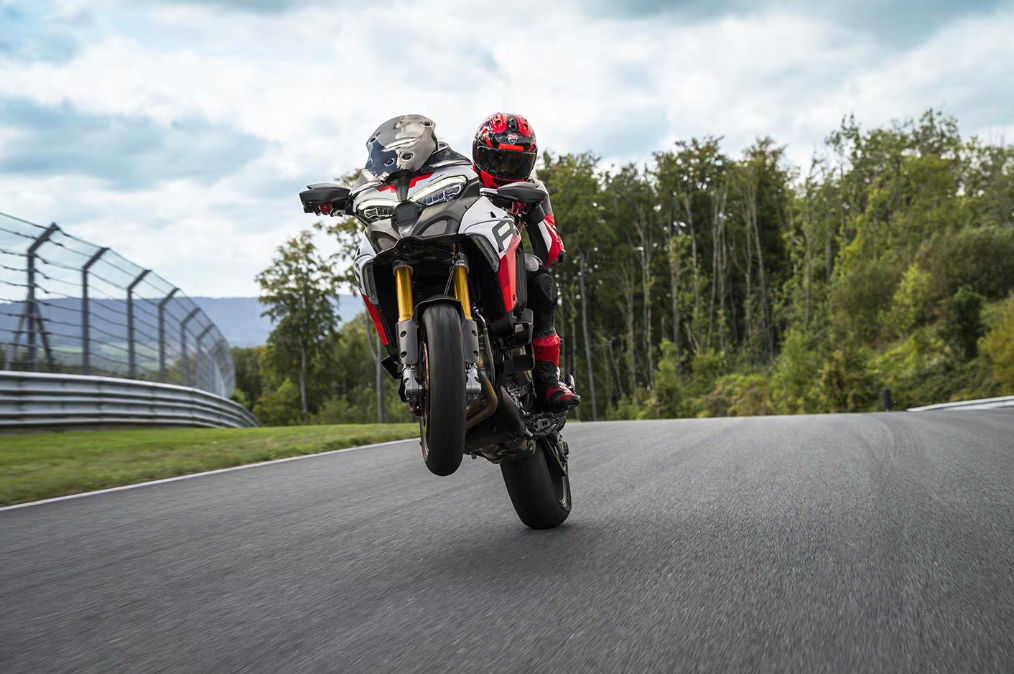 杜卡迪推出揽途 V4 时,进一步朝着公路 / 越野两用的方向发展。也就是说,它让这款旗舰旅行摩托车更加多功能、舒适且易于使用 —— 这些特点与宝马的水平对置发动机 GS 系列摩托车非常相似,杜卡迪在开发 V4 动力的揽途时,确实参考了这款车。为了在各个方面与 GS 竞争,博洛尼亚・潘加莱的工程师们付出了很多努力 —— 甚至为了延长维护周期,放弃了杜卡迪标志性的 Desmodromic 气门驱动系统,改用传统的气门弹簧。