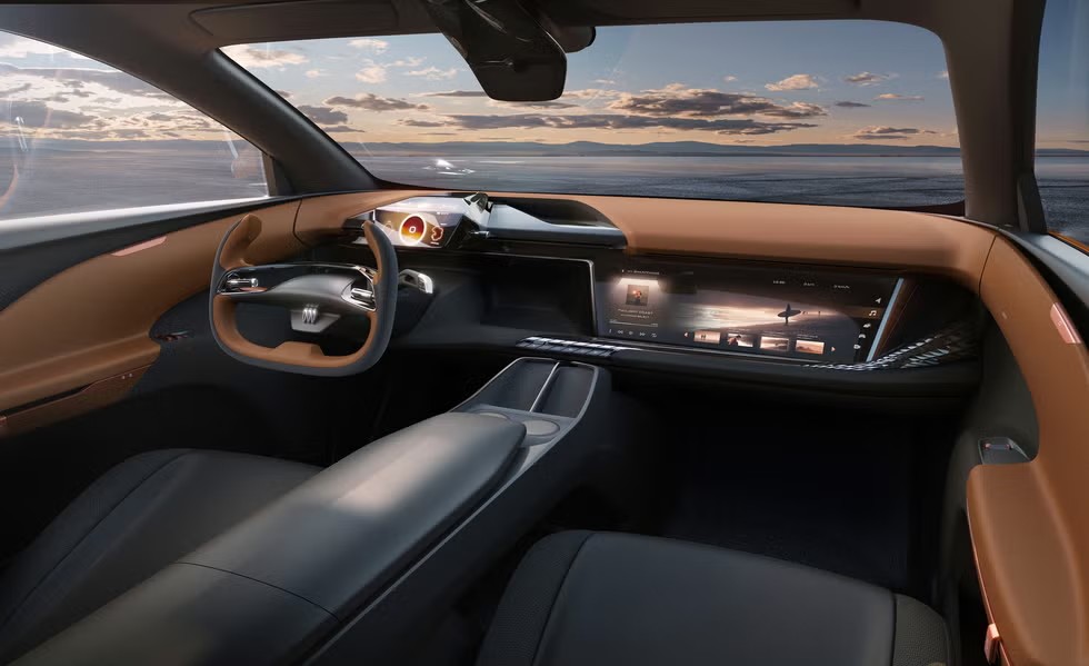 虽然目前关于伊莱克特拉 GS 概念车的动力系统细节尚未公布,但就其外观设计而言,绝对符合一款运动型轿车吸睛的特质。别克称这款概念车的设计灵感来源于 “神秘的半人马”,虽说从外观上不太能直接看出这种联系,但它看起来确实相当惊艳。伊莱克特拉 GS 车身长度约为 5.3 米,轴距达 3.2 米,相比宝马 i7,车身略短几英寸,但轴距几乎相同。这款车采用了前舱前移设计,这使得发动机舱较短,车顶线条则呈现出长长的、平缓的曲线,这种设计有助于打造更宽敞的车内空间。车头部分,纤细的大灯上方点缀着复杂精致的 LED 灯组,车尾的尾灯也采用了类似的设计元素。车身线条流畅,简洁的线条勾勒出车身轮廓,玻璃车顶向后延伸,与简洁的后扰流板自然衔接,搭配 23 英寸的轮毂,让伊莱克特拉 GS 看起来气场十足。车内,棕色与黑色皮革相互搭配,营造出舒适的氛围。设计简洁的仪表盘前方,配备了一块 16.3 英寸的屏幕,为前排乘客提供娱乐功能。双辐式方向盘后方是数字仪表盘和增强现实抬头显示系统。尽管车内屏幕众多,但中控台仍保留了一排用于控制空调系统的实体按键。