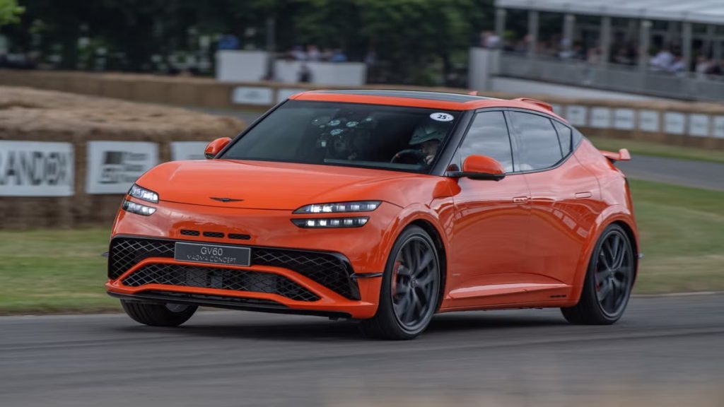 GV60 Magma 基于 E-GMP 平台打造,该平台同时支撑着多款捷尼赛思、现代和起亚车型。此前,基于此平台打造的现代伊兰特 5 N 和起亚 EV6 GT 等高性能纯电动车,已在市场上收获良好口碑,尤其是伊兰特 5 N,凭借出色的驾驶乐趣,荣获 2024 年度电动车大奖,这无疑为 GV60 Magma 的成功奠定了坚实基础。鉴于 GV60 Magma 与伊兰特 5 N、起亚 EV6 GT 共享平台,采用这两款车型的高输出电动驱动系统,将是 GV60 Magma 的不二之选。伊兰特 5 N 和起亚 EV6 GT 均配备双电机全轮驱动系统,常态下功率可达 601 马力,通过 Boost 模式,还能瞬间爆发至 641 马力。相较于标准 GV60 中动力最强的版本,GV60 Magma 多出 158 马力,如此强大的动力,将使 GV60 Magma 性能大幅提升。目前,483 马力的 GV60 Performance 零百加速仅需 3.7 秒,而 GV60 Magma 有望将这一成绩缩短至 3.0 秒左右,成为真正的性能猛兽。