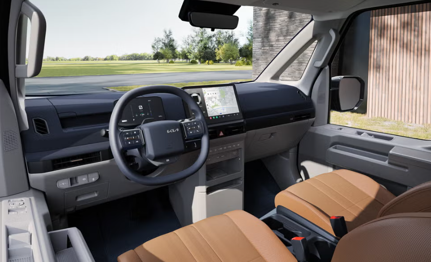 起亚特别介绍了 PV5 WAV,该车侧面设有开口,配备可承重 300 公斤 的斜坡,方便轮椅使用者从路边进入车内。车内还设有方便易用的通用轮椅安全带固定系统,并且第三排座椅可向上折叠,以便轮椅使用者与其他乘客一同出行。PV5 将提供三种电池选择。大多数版本的电动厢式车将搭载 51.5 千瓦时或 71.2 千瓦时的电池,均采用镍锰钴化学电池。PV5 货运版还将提供一款容量为 43.3 千瓦时的磷酸铁锂电池。所有电池都将驱动一台前置单电机,最大功率 161 马力,峰值扭矩 250 牛・米 。起亚称,搭载 71.2 千瓦时电池的客运版 PV5,最大续航里程约为 400 公里 。起亚还宣称,PV5 电量从 10% 充至 80% 最快只需 30 分钟,但未明确具体对应哪一款电池。作为一款厢式车,PV5 的内饰看起来现代且较为豪华,提供了多种内饰颜色选择,包括深海蓝、陶土棕和冰 berg 绿等。起亚表示,内饰采用了耐用、易清洁的可持续材料,体现了环保理念。所有版本的 PV5 “驾驶区域” 都配备了一块 7.0 英寸的数字仪表盘和一块 12.9 英寸的信息娱乐屏幕,运行基于安卓汽车的操作系统。为了进一步体现车辆的多功能性,起亚还推出了 “起亚 AddGear” 系列模块化配件,用户可根据需求安装在车内。