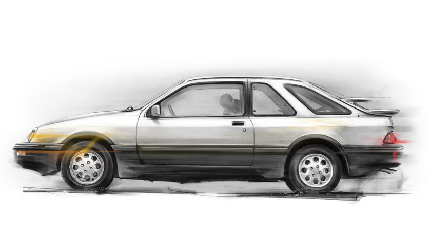 默寇利 XR4Ti 搭载一台涡轮增压的单顶置凸轮轴2.3 升直列四缸发动机,可向后轮输出 175 马力的动力。在高转速时,发动机的声音有些嘈杂,而且和 20 世纪 80 年代的其他涡轮增压发动机一样,动力输出有明显的峰值。当发动机转速达到 3000 转 / 分钟时,涡轮增压带来的推背感会让你的脸颊变形,但很快就会减弱。杰克・鲁什一直不喜欢这款发动机,他评价道:“它需要一个更小的涡轮增压器和更高的压缩比。”XR4Ti 的后行李厢上有一个像双翼飞机机翼一样的尾翼,锋利得足以切碎芜菁。车身下半部分有一半隐藏在灰色的塑料护板下。欧洲风格的前大灯会让迎面而来的司机感到不适。整车的外形呈流线型的椭圆形,看起来就像是从柏油路面下鼓出来的地热现象。