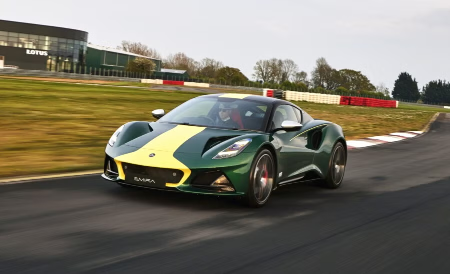 回到这款特别版车型 —— 路特斯 Emira 克拉克版,全球仅限量 60 台。它复刻了 1965 年克拉克夺冠座驾路特斯 38 型的经典涂装,车身采用绿色车漆,搭配醒目的黄色赛车条纹;车尾排气管同样以黄色点缀,加油口盖则是阳极氧化蓝色,与原版赛车如出一辙;车身外部还手绘了黄色细条纹,细节之处尽显独特。