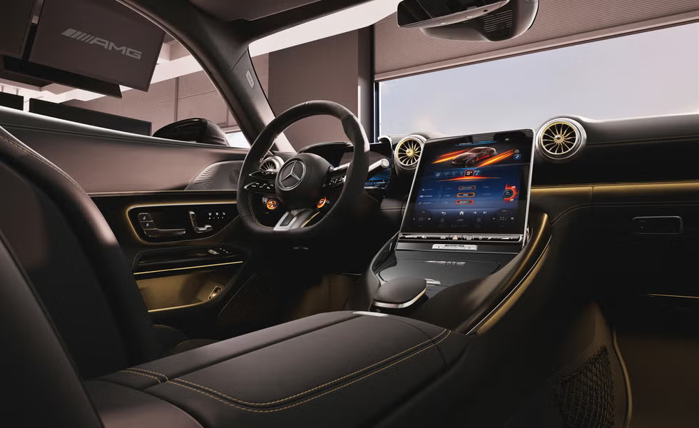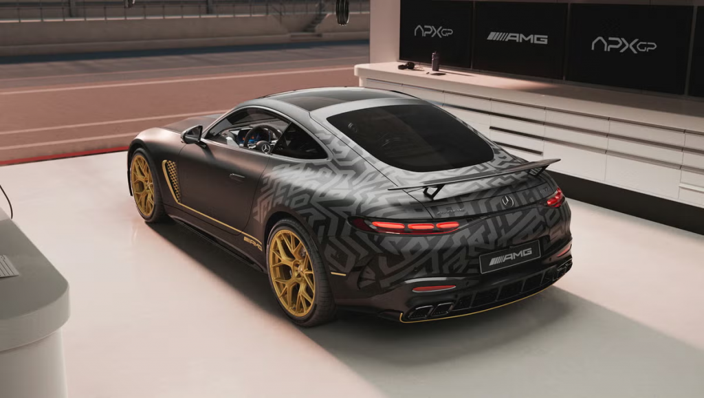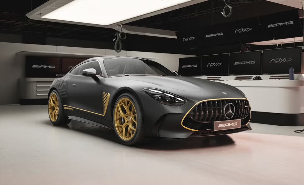 车内同样延续主题风格,座椅采用黑色纳帕真皮与超细纤维麂皮材质包裹,并点缀金色缝线;大量碳纤维饰板中融入金色线条,加热 AMG 运动方向盘、仪表盘、门板和中央扶手也都有金色缝线装饰;门槛处的 AMG 标识带有金色灯光效果,脚垫的皮革部分绣有 “竞速金” 的 “APXGP” 字样。车内还配备 15 扬声器柏林之声音响系统和 AMG 赛道数据记录系统,其他标准配置包括前轴升降系统和定制 AMG 室内车衣。与所有 GT63 车型一样,APXGP 特别版搭载 577 马力的 4.0 升双涡轮增压 V8 发动机,并配备全轮驱动系统。目前官方尚未公布售价,但这款特别版极为限量,全球仅发售 52 台。中控台上的 “52 台限量版第 1 台” 徽章,时刻彰显其独特身份。