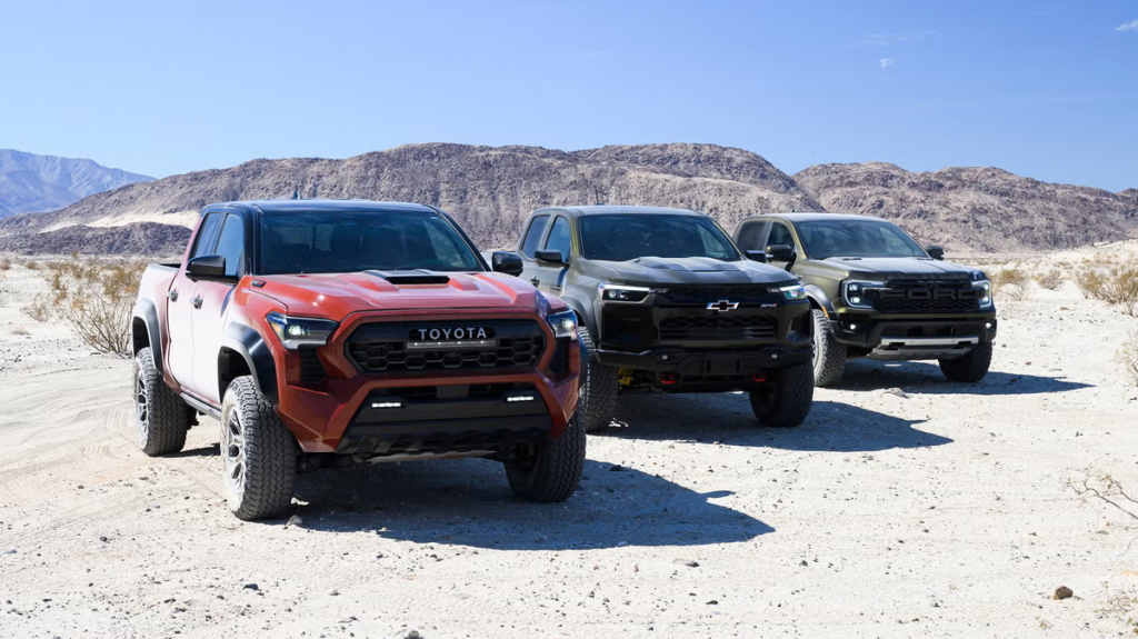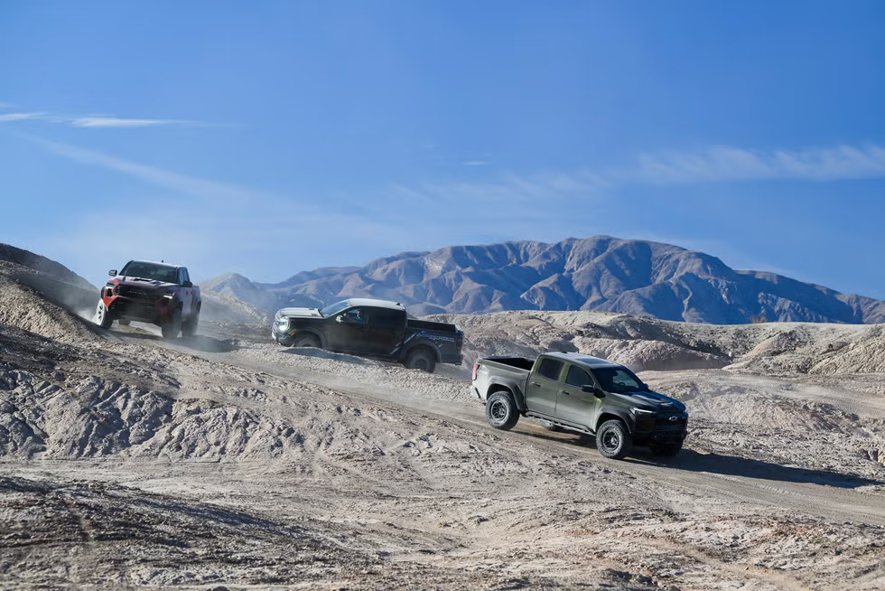 对大多数人来说,“巴哈模式” 意味着在卡波圣卢卡斯的旅游胜地,穿着人字拖,喝着插着小伞的饮料。说实话,我们也挺向往那样的 “巴哈模式”,但自从上世纪 80 年代恰巴・切雷开着道奇撞到一头牛后,管理层就再也没派我们去过墨西哥。所以,这次我们没去海滨酒吧,而是带着市场上三款越野性能最强的中型皮卡,前往沙漠和测试赛道。这在一定程度上是对 2024 年一场对决的延续,当时参与的是丰田塔科马 TRD Off – Road 和雪佛兰科罗拉多 ZR2。但这次,我们把这两款原本就越野能力出众的车型升级了,换成了 TRD Pro 和 ZR2 Bison,再加上福特 Ranger Raptor,组成了这次的三方对决。在沙漠中,我们驾车在沙地冲起滚滚沙尘,车尾在仙人掌旁甩动,后座的泡沫 cooler 也跟着来回滑动。如果在一段越野行程结束时,你都不用等碳酸饮料平静下来,那说明你还没真正体验过越野的刺激。先小小剧透一下结局,这三款皮卡都非常出色,各有优劣。但我们有一套评选获胜者的方法,不仅考量车辆的性能和亮点,也注重其配置和效率。我们把它们带到越野场地,就是为了看看谁能脱颖而出。