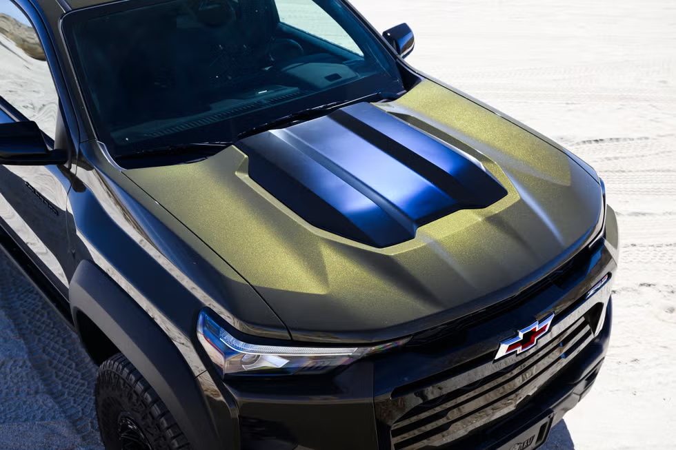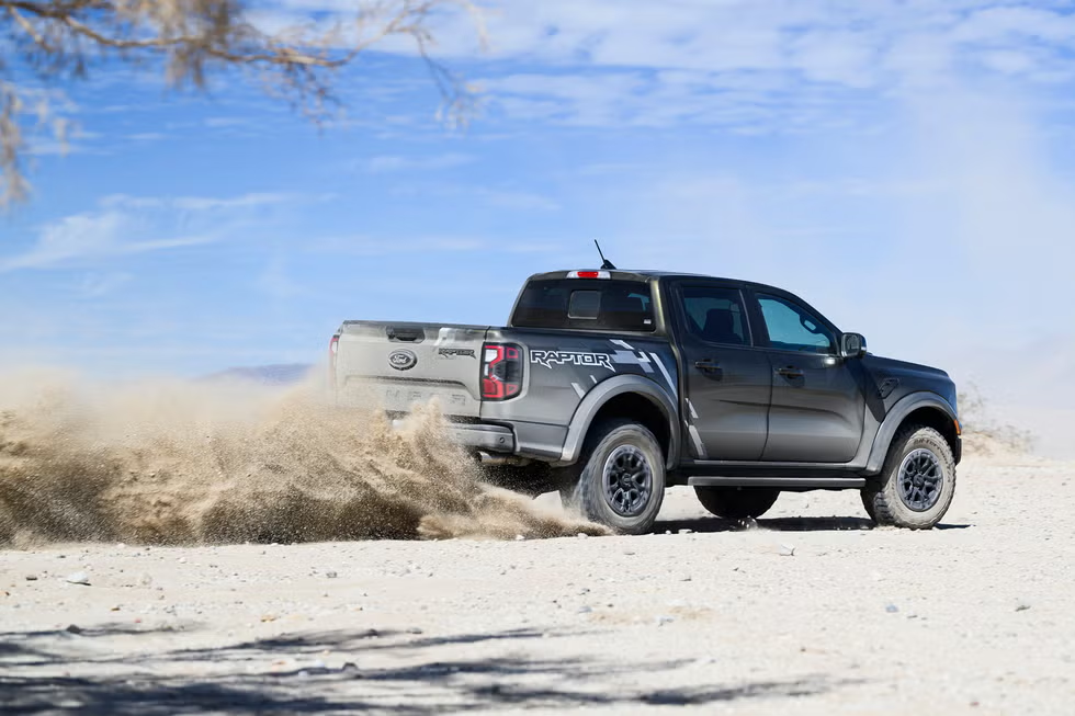 雪佛兰阵营派出的是科罗拉多 ZR2 Bison。如果这只是一场外观比拼,那它肯定能轻松碾压其他皮卡,直接开进获胜者的停车位。ZR2 Bison 凭借 约 88.9 厘米的固特异牧马人 Territory MT 轮胎,高高地俯视着丰田和福特,轮胎上方是高拱的宽大轮拱。这种宽轮胎要求 约 43.18 厘米的轮毂采用新的偏距,让车辆看起来像一只钢铁斗牛犬,姿态十分醒目。不过,它的 “内心” 很柔软,或者说至少有一颗由液压跳动控制的 “心”。Multimatic 滑阀减震器和液压缓冲块能应对复杂多变的地形。ZR2 Bison 有电子锁止的前后差速器、AEV 品牌可安装防脱圈的轮毂、AEV 前后保险杠、前部的底盘护板和后部保护油箱的护板,还有多种越野模式,包括 ZR2 独有的巴哈模式。它巨大的轮胎太大了,无法在车底安装备胎,所以备胎只能放在货厢里,这虽然占用了载货空间,但大大增加了 ZR2 Bison 那种 “疯狂麦克斯” 式的魅力。科罗拉多没有混合动力选项,它的动力系统和普通 ZR2 一样,是一台涡轮增压 2.7 升四缸发动机,可输出 310 马力,扭矩为 583 牛・米,搭配八速自动变速器。Ranger Raptor 是粗犷中型皮卡市场的新成员,它可远不止是在普通 Ranger 上贴个标签那么简单。虽然它的姿态不像它的 F – 150 同名车型那样像专业的奖杯卡车,但 Ranger Raptor 的轮距比非 Raptor 车型更宽,转向齿条也更粗壮。和丰田一样,福特也选择了福克斯来打造悬挂系统,但 Ranger Raptor 配备的是电子控制的福克斯 Live – Valve 减震器,能根据不同路面自动调节。一台 405 马力的双涡轮增压 3.0 升 V6 发动机,扭矩为 583 牛・米,与一台十速自动变速器匹配,让福特在马力上领先。