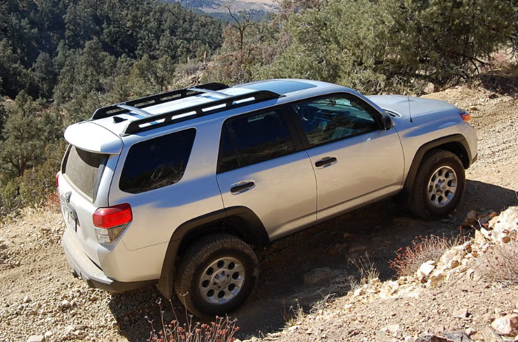 尽管车身较重,但 4Runner 在城市中行驶灵活,驾乘体验舒适,车内静谧性良好。增加的车架加固=带来了好处,在坑洼路面行驶时也不会有颠簸感。4.0 升 V6 发动机搭配五速自动变速箱=,轻松跟上车流速度。不过,它从 0 加速到 120公里 / 小时需要 7.8 秒,比我们 2005 年 4 月测试的上一代 4Runner 慢了 0.6 秒。当你轻踩油门节省燃油时,仪表盘上的绿色 “节能” 指示灯会亮起。在综合高速公路巡航和越野行驶的测试中,油耗不错。在越野方面,Trail 真正展现出了自身价值。在攀登高地一座海拔 500米的陡峭山峰时,4Runner 势不可挡,自信地穿越松散的砾石和粗大的树根,甚至还停下来,将一辆被困的丰田皮卡从困境中拖出。其四驱系统专为越野设计,较为传统。通过手动换挡杆可在 2Hi、4Hi和 4Lo之间切换,分动箱没有差速器,低速挡传动比为 2.6:1,按下按钮即可启动后差速锁。在切换到 4Lo 模式后,可开启爬行控制功能,车辆能将速度自动调节,自动启动单个车轮刹车,将扭矩分配到两侧车轮,以获得最佳牵引力。它能让车辆自信地通过越野障碍。对于经验丰富的越野爱好者来说,这多少有点噱头的成分。不过,多地形选择系统有五个针对不同路面的设置,可根据路面情况调整油门响应和变速箱换挡点。这些功能确实让 4Runner 在具有挑战性的越野道路上行驶更加轻松,此时仪表盘上各种指示灯亮起,显示各种电子辅助系统正在工作。