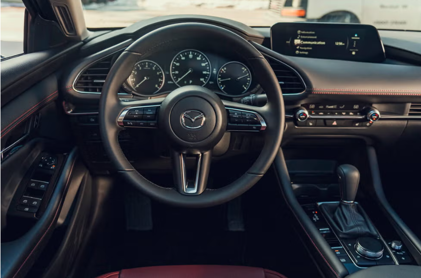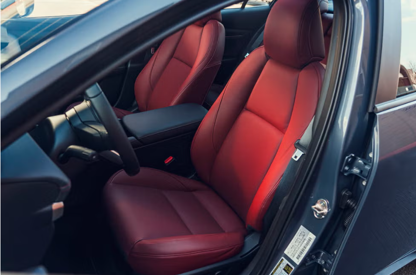 马自达 3 是我们非常喜爱的小型车之一,其提供的四驱系统在同级别车型中较为少见。马自达 3 搭载的最强动力版本,即 2.5 升涡轮增压发动机,标配四轮驱动。不过,非涡轮增压的基础发动机也能选装四驱系统。对于 2025 款车型而言,要想以最低成本拥有马自达 3 的四驱版本,那就是选择轿车版的碳版车型,也远低于涡轮增压轿车版本,这款碳版车型是基础发动机马自达 3 轿车中的最高配置版本。正因如此,它配备了大量标准配置,包括无线智能手机映射功能、八扬声器音响系统、自适应巡航、盲点监测、天窗、座椅加热以及电动调节驾驶座。不过,你得喜欢多金属灰色金属漆,因为这是唯一的外观颜色。好在它搭配了黑色轮毂和外观装饰,车内则是活力四射的红色皮革内饰,整体视觉效果不错。