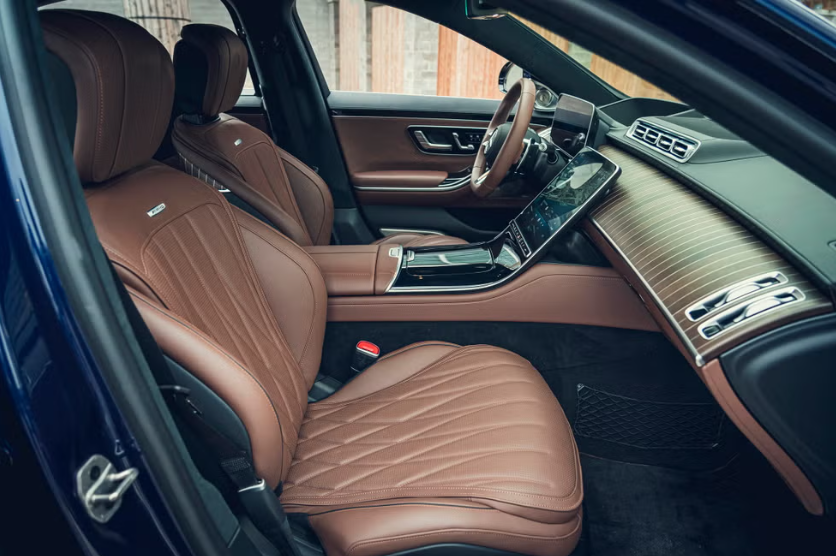 作为 S 级轿车,其车内空间宽敞且豪华。前排座椅极为舒适,不过我们得关闭主动充气式侧靠垫,因为只要车辆稍有转弯,它就会恼人地挤压我们的肋骨。宽敞的后排空间经过精心设计,在我们试驾的这辆 S63 ,这些配置包括可高度调节的独立后排座椅,配备独立的视频屏幕、空调控制以及可折叠的托盘。右侧的座椅甚至还有电动折叠腿托。就算是私人飞机的座椅,也不过如此了。