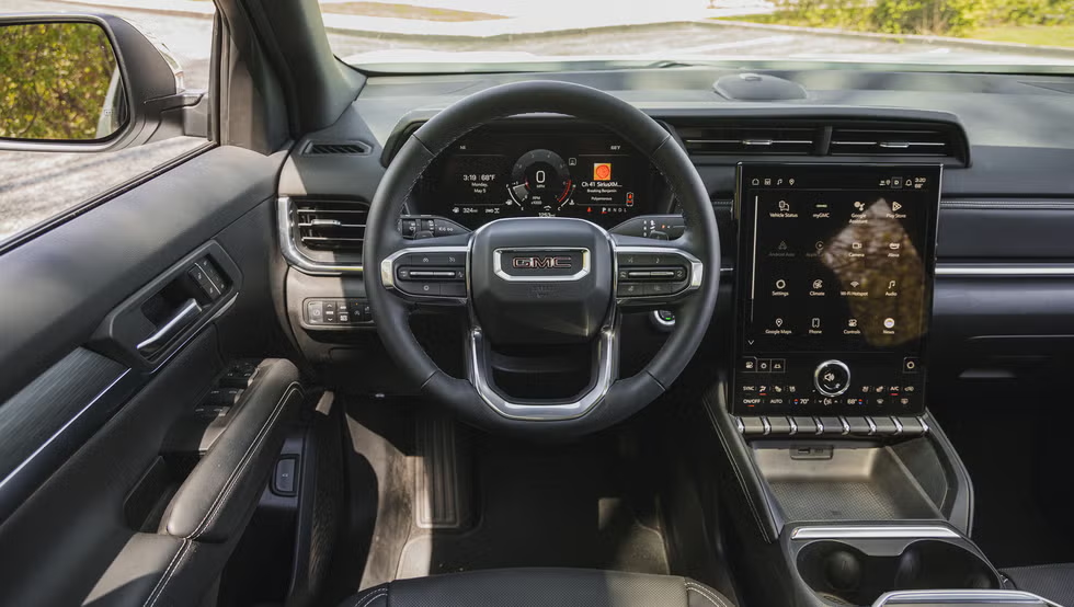 有意思的是,2025 款初期仅提供入门级 Elevation 版本,主打越野风格的 AT4 和豪华取向的 Denali 版本则要等到 2026 年才会推出。全系标配 1.5 升涡轮增压四缸发动机,最大功率 175 马力。我们试驾了 Elevation 四驱版车型 —— 前驱是 Elevation 的标准配置,匹配 CVT 变速箱;而四驱版则换装 8AT 变速箱。
