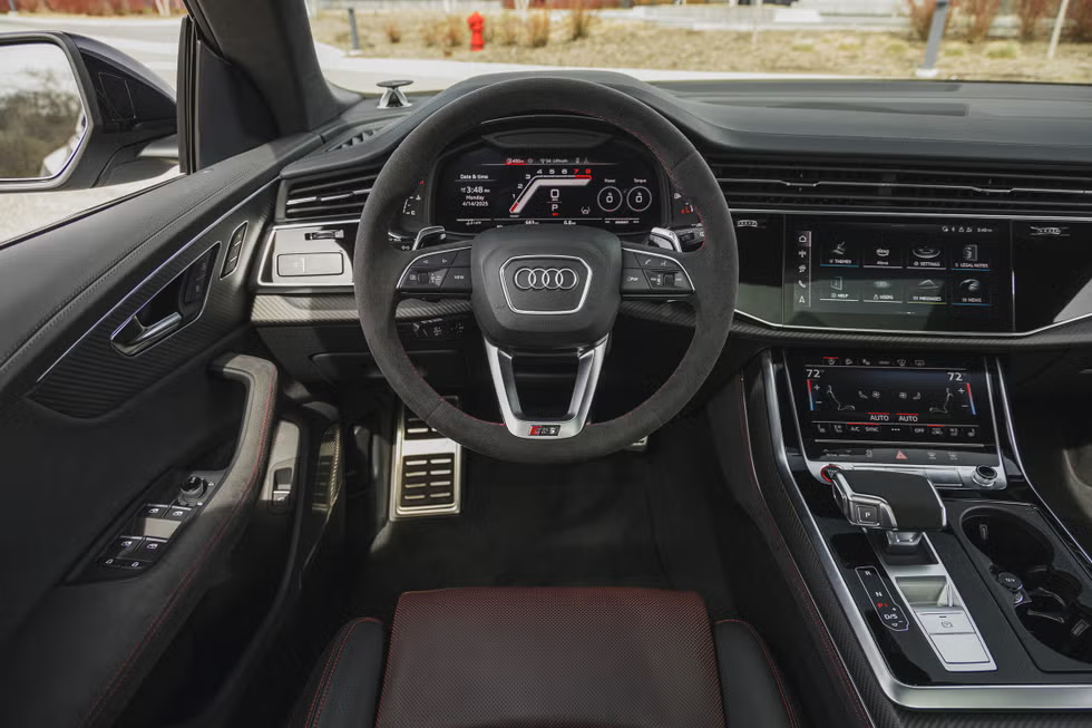 外观方面,RS Q8 性能版汲取 2024 款 Q8 的设计语言:全新头灯组支持多种日行灯模式,尾灯造型更锐利,搭配新增的车漆颜色与轮毂样式,视觉层次感显著提升。内饰标配 RS 专属运动座椅,可选碳纤维或 Alcantara 材质饰板,方向盘底部的 RS 标识时刻彰显性能身份。
