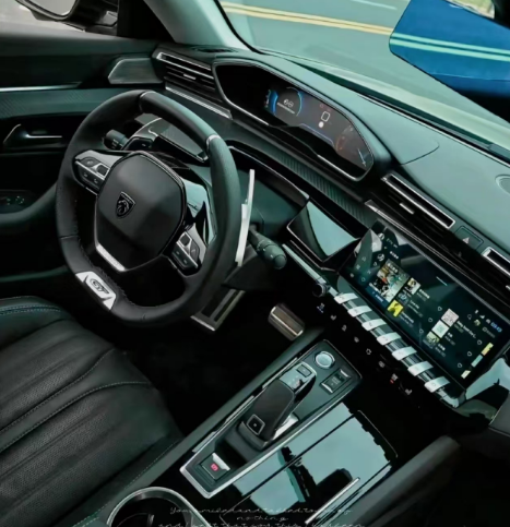 坐进车内,2025 款标致 508L 的内饰尽显豪华与科技氛围。i-Cockpit 唯我全感官座舱采用 12.3 英寸液晶仪表 + 10 英寸中控屏的组合,这种布局让驾驶者在操作时无需大幅度偏移视线,即可轻松读取各种信息,提升了驾驶的安全性与便利性。12.3 英寸液晶仪表显示清晰、信息丰富,能够根据不同的驾驶模式切换显示风格,为驾驶者带来沉浸式的驾驶体验。10 英寸中控屏集成了丰富的功能,操作流畅,反应灵敏,搭配上 Blue-i 3.0 智能生态系统,接入华为 HiCar,支持手机无感连接、远程控车以及丰富的应用程序,让驾驶者仿佛置身于一个智能移动空间,随时享受便捷的科技生活。