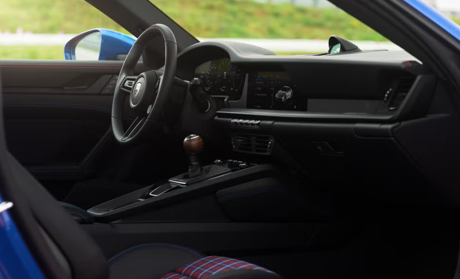 2026 款保时捷轿跑沿用了标准版六缸动力总成和六速手动变速箱,包括精致的胡桃木换挡杆等细节都未作改动。虽然动力输出保持一致,但机械限滑差速器和运动悬架(比标准版 911 降低 10 毫米)将增强这款轿跑的弯道性能。此外,该车还配备了保时捷的 Sport Chrono 运动计时组件、后轮转向系统、PASM 主动悬架管理自适应减震系统以及运动排气。