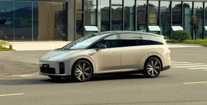 理想 i8 的外观设计挺会取巧的,把理想 L 系列和 MEGA 的优点都融进去了。前脸那个标志性的星环灯,就跟 MEGA 一样装在前风挡下面,老远就能认出来。前包围的样子则跟 L 系列很像,大灯组藏在包围两侧,看起来特别整体。