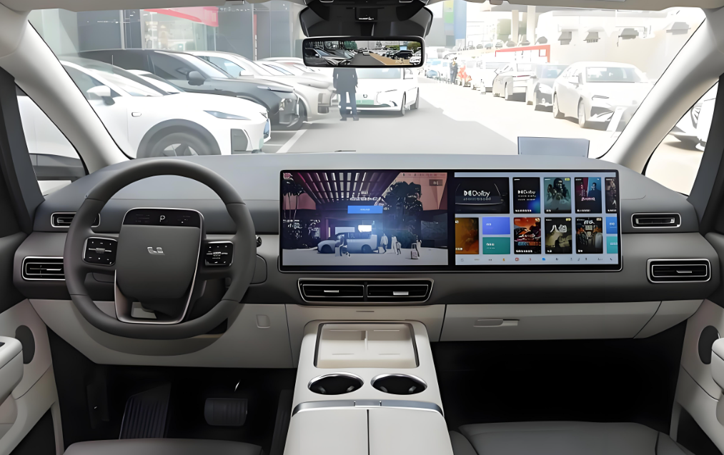 从曝光的内饰谍照看,还是理想家族的风格,大尺寸中控屏和副驾娱乐屏组成的双联屏很显眼,再加上 HUD 抬头显示和流媒体后视镜,开车时看信息、操作都方便。
