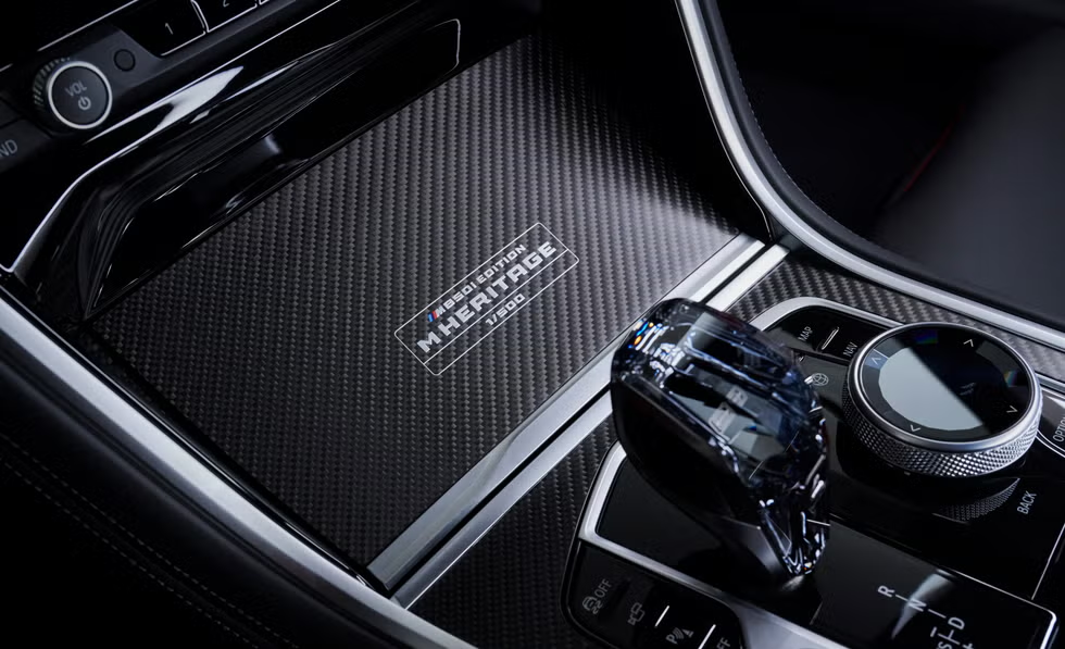 前排头枕的 M 徽章、多处 “M850i Edition M Heritage” 全名标识,以及门槛上 “1/500” 的专属印记,时刻彰显这款车的独特身份与限量属性。