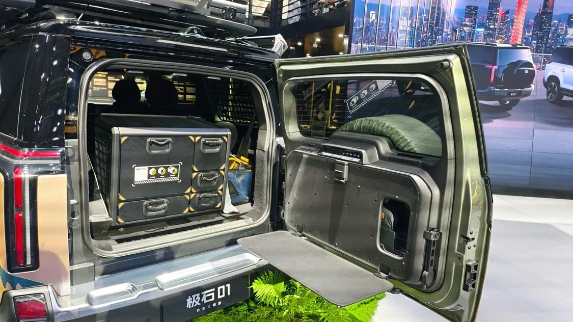 同时,极石01猎鹰版配备了原厂定制的狩猎套件,包括行李架、全景天窗及立柱扶手,全面升级狩猎体验。其四座布局设计,确保了打猎时车内移动的便捷性,而车顶平台则为用户提供了放鹰与射击时的稳定支撑。此外,针对中东高温环境,极石01猎鹰版特别升级了空调系统,确保驾驶者与乘客的舒适体验。