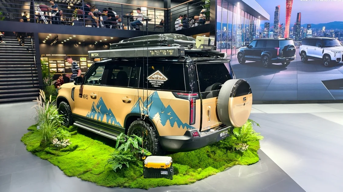 极石01“钓鱼大师版”,专为路亚钓鱼爱好者量身定制,此前已在成都车展亮相。其改装套件集车顶帐篷、侧边天幕、尾门厨房系统、淋浴帐篷、加压水箱及魔盒套件于一体,全面满足户外钓鱼生活的需求。外观上,独特的“沙漠暖金”车色搭配“峰林傲翔”拉花元素,彰显出车辆的个性与魅力,完美融合了户外生活与时尚元素。