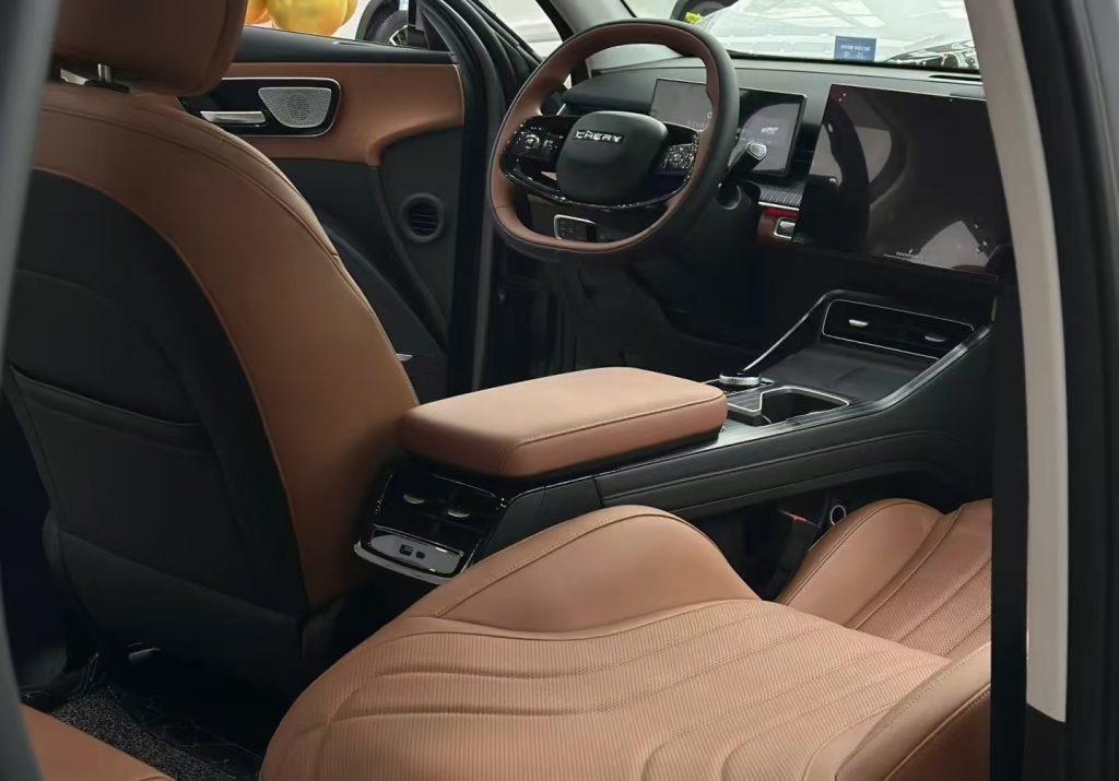 空间绝对是全新瑞虎 8 的王牌亮点!车身尺寸升级到 4725×1880×1705mm,轴距更是达到了 2825mm,直接放弃了实用性不高的七座布局,专攻大五座设计。这一调整太明智了 —— 后排空间宽敞到能轻松翘二郎腿,带老人孩子出门,三个人并排坐也不挤,中间乘客的脚也有充足摆放空间。行李箱最小容积就有 546L,装下全家行李、婴儿车绰绰有余,要是把后排座椅放倒,容积能扩展到 1453L,露营装备、大件物品都能轻松塞下,妥妥的 “移动大客厅”,周末全家出游再也不用为装东西发愁。