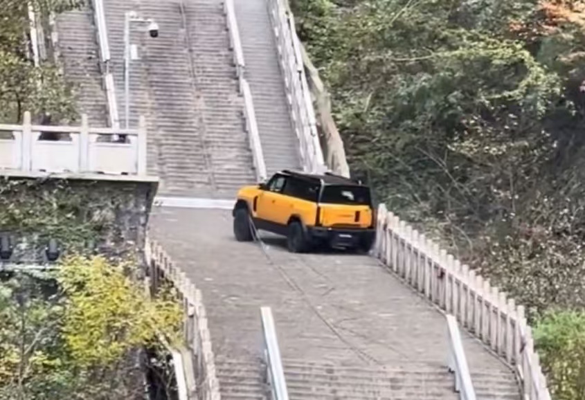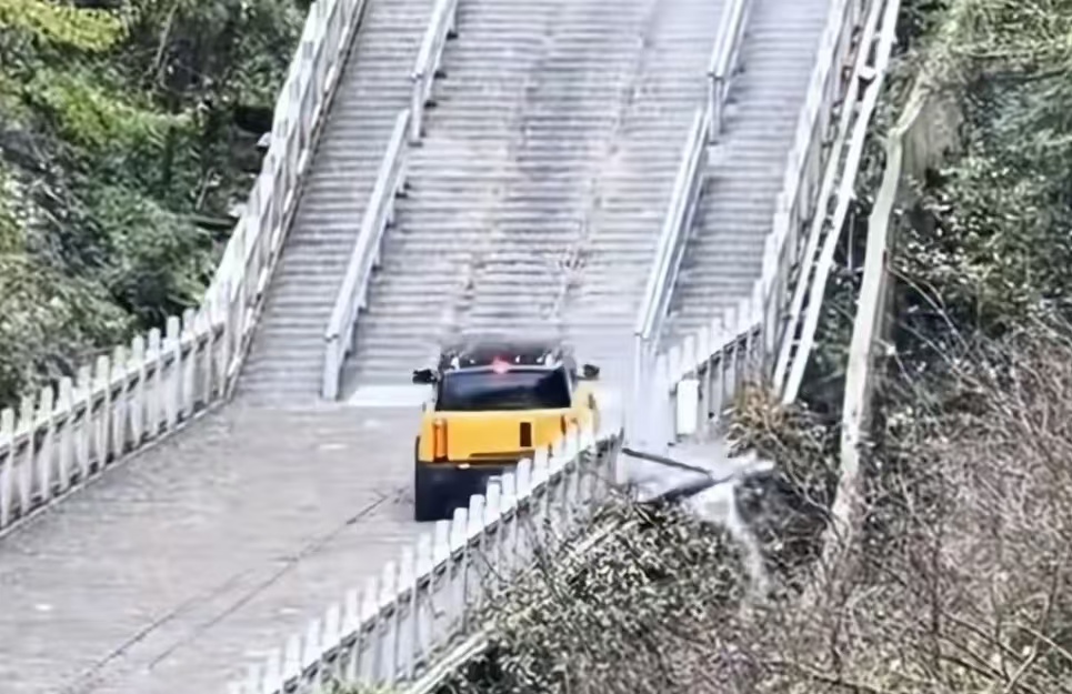 可他们没算明白,天门山天梯根本不是普通测试场。这台阶全长近 300 米,垂直落差 150 米,平均坡度 45 度,最陡的地方超过 60 度,每级台阶才 30 厘米宽,下雨天还特别滑,业内早叫它 “量产车禁区”。有网友调侃:“徒步爬都腿软,开车上去纯属赌运气。” 更要命的是,为了这场测试,景区 12 号、13 号直接封了天梯,游客只能绕路坐电梯,不少人吐槽 “特意来打卡,结果白跑一趟”。
