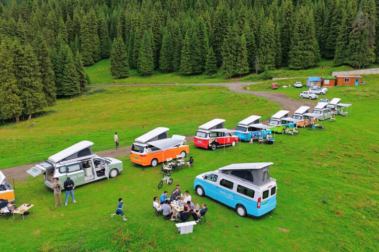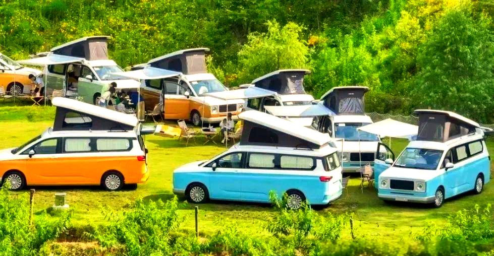 VALA的亮点集中在“移动空间的多功能性”,通过复古设计、模块化布局和智能配置,重新定义汽车生活方式。外观采用怀旧复古风,双拼漆面如卡其绿、海风蓝、焕力橙,方正车身造型打破传统房车的工具化印象,更像一台可移动的生活容器。模块化空间设计是核心优势,车内配备2.3米多功能IGT导轨,座椅、餐桌、储物柜等可自由滑动、旋转或拆卸,无需固定安装。副驾驶座椅可向后旋转,配合折叠桌板实现移动办公或亲子互动。升顶后,车内高度增加至约3米,可搭建额头床(尺寸2000×860毫米)或后排拼接床(1.9×1.25米),满足2至4人睡眠需求。后舱配备5英寸智能中控屏,实时监控温度、湿度、电量,并控制影音娱乐系统,如34英寸4K显示器、双低音炮和K歌系统。
