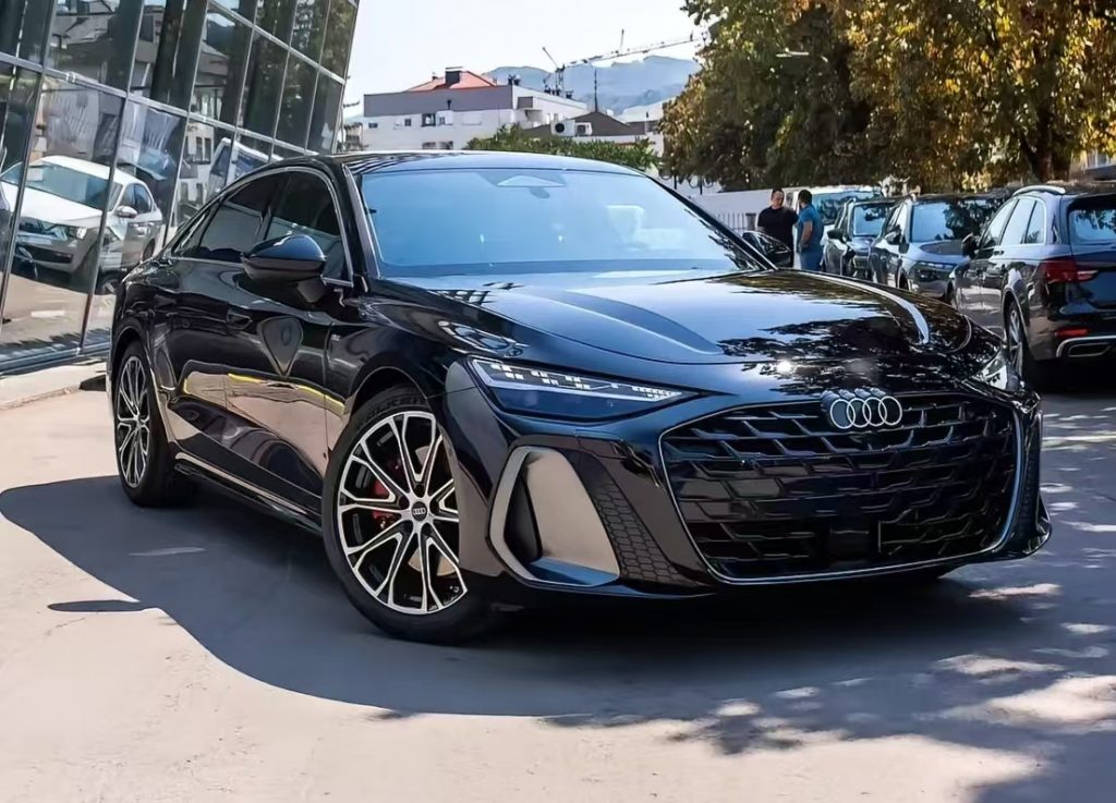 实车一亮相,最吸睛的就是它的外观,和老款比简直像换了个“造型”。以前标志性的六边形镀铬格栅,换成了超大尺寸的熏黑蜂窝状设计,几乎占满了整个车头,原本在中间的四环logo挪到了格栅边缘。搭配上犀利的“数字LED日行灯”,晚上点亮后辨识度拉满,网友都直呼“奥迪这‘灯厂’称号果然名不虚传”。车身侧面也变了样,放弃了传统沉稳的三厢造型,用了流畅的溜背设计,还配上了半隐藏式门把手,不仅风阻系数低到0.23(风阻越低越省油、开着越稳),还多了几分轿跑的动感。轴距依然保持3024mm的大空间水准,车长还增加到了5050mm,看起来更修长大气。车尾的变化也很惊艳,老款的分体式尾灯换成了贯穿式OLED灯带,加上新增的后备厢扰流板和真双出排气,运动感和科技感都拉满了。不少人看了都说,新车尾部像极了奥迪A7,车头则有概念车的未来感,彻底摆脱了以前“官车”的刻板印象。