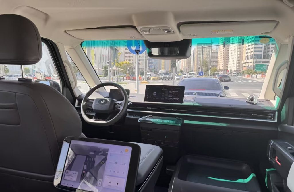 坐进车内,这款车的人机交互系统也很有亮点。三排六座的布局加上充足的行李空间,能满足多人出行的各种需求。中央显示屏是乘客和车辆互动的核心,在这里不仅能实时看到行驶路线、车辆感知到的周围环境,还能清楚了解自动驾驶系统的关键决策,比如什么时候避让行人、怎么应对红绿灯、要不要变道等,让乘车过程变得透明又可控。除此之外,乘客还能通过显示屏直接调节座椅加热、空调温度、音响音量等,享受个性化的乘坐体验。遇到紧急情况时,屏幕上还有快捷按钮,能直接联系人工客服或让车辆安全停车,全方位保障乘客安全。