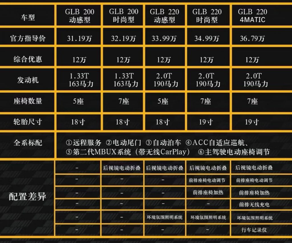 近期BBA车企在节前就开始推出幅度明显的优惠活动,其中多款车型的降幅让不少人感到意外。根据门店公布的数据,奔驰品牌多款车型的直降额度可达到11万元,GLB的优惠更高,可逼近13万元,成为关注度较高的入门车型之一。