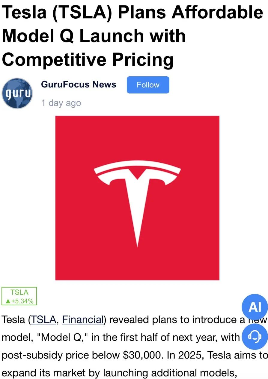 近几年,网上关于特斯拉最入门级车型Model Q的消息每年都会被翻出来猜测和报道,不过一直没有官方表态。根据这次消息推测,Model Q离量产发布已经非常接近了。