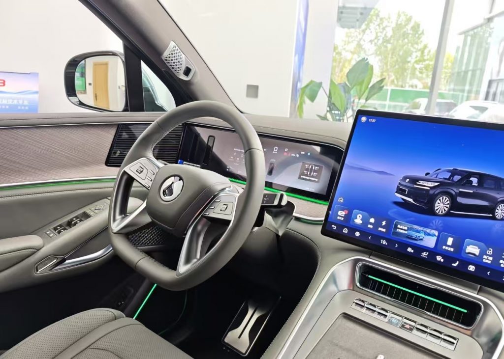 内饰上,三联屏布局特别亮眼,17.3英寸悬浮中控屏、13.2英寸液晶仪表和13.2英寸副驾娱乐屏,操作起来很方便;还换了全新三辐式多功能方向盘和BOOST拨片,新增了熔岩红内饰和一体式运动座椅,整车大面积用了皮质包裹,还搭配了顶级天然浅黛真木,再加上“钻石切割”水晶档把、流星光翼迎宾光毯这些小细节,豪华感和运动氛围直接拉满。