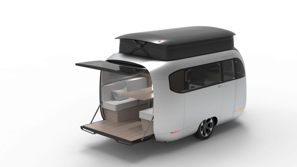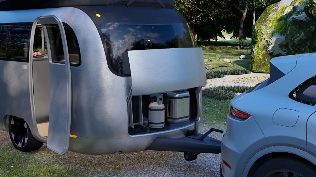 Airstream与保时捷联合推出的一款概念旅行拖车近日通过一组内外图片正式亮相 这款概念产品以未来出行和轻量化露营为核心理念,展示了双方对下一代旅行拖车形态的共同设想 不过在床上模式时,只能容纳两个成年人。 后舱设计为可开启,可作为小型后门廊使用。 拖车前部设有储物柜,提供货物空间,关闭时与前面板齐平,以提升空气动力学性能。 文章导航 露营车:为VanLife而生!福特Transit Trail实拍展示2027款宾利添越Antenara版亮相:外观图片多角度发布