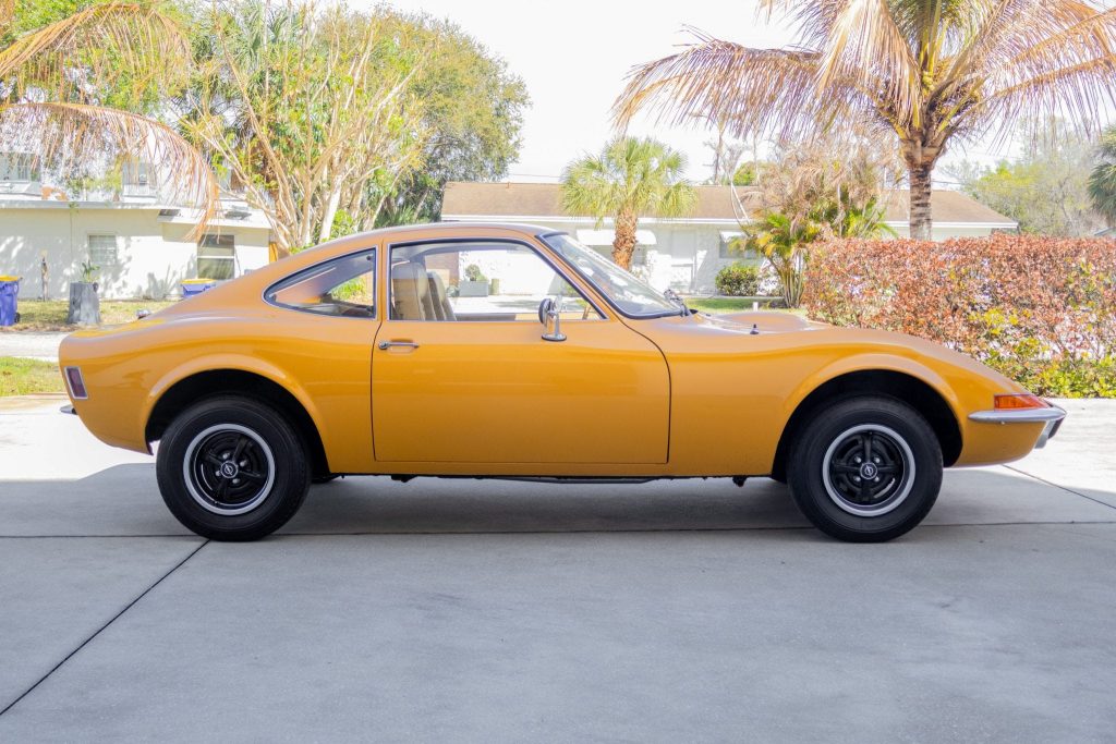 这是一台1973款欧宝GT,外观采用十分抢眼的黄色涂装,整体造型让人联想到缩小版的科尔维特跑车,因此也被不少车迷称为“迷你科尔维特”。车辆目前正在Bring a Trailer平台上进行拍卖,吸引了大量关注目光。欧宝GT的设计基础源自当年定位务实、经济的欧宝卡德特车型。为了打造一款能够提升品牌形象的运动化产品,欧宝在原有结构基础上赋予了GT更加低矮流畅的车身比例,使其在保持结构简单的同时,兼具跑车外形。该车型的设计工作由克莱尔·麦基坎操刀,他此前曾参与雪佛兰旅行者车型以及第二代科尔维特的造型设计。这款欧宝GT最早以概念车形式在1965年亮相,但真正投入量产则是在1968年。其欧洲市场发布后不久,便遇上了同样定位年轻化的福特卡普里车型,后者在市场层面取得了更为持久的成功。