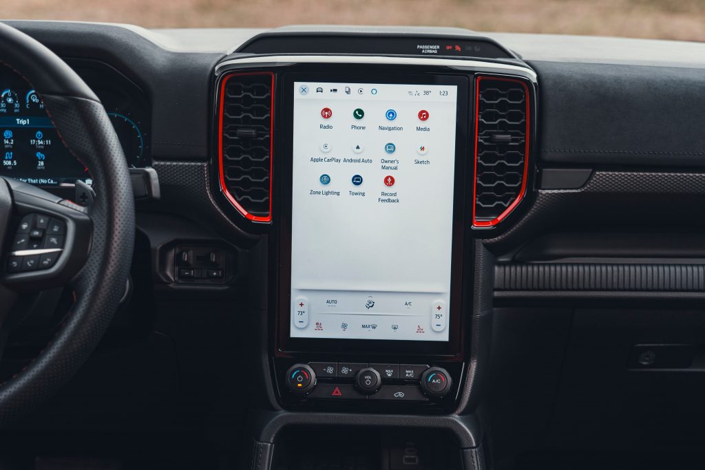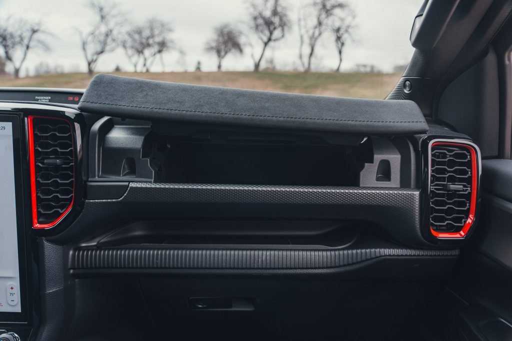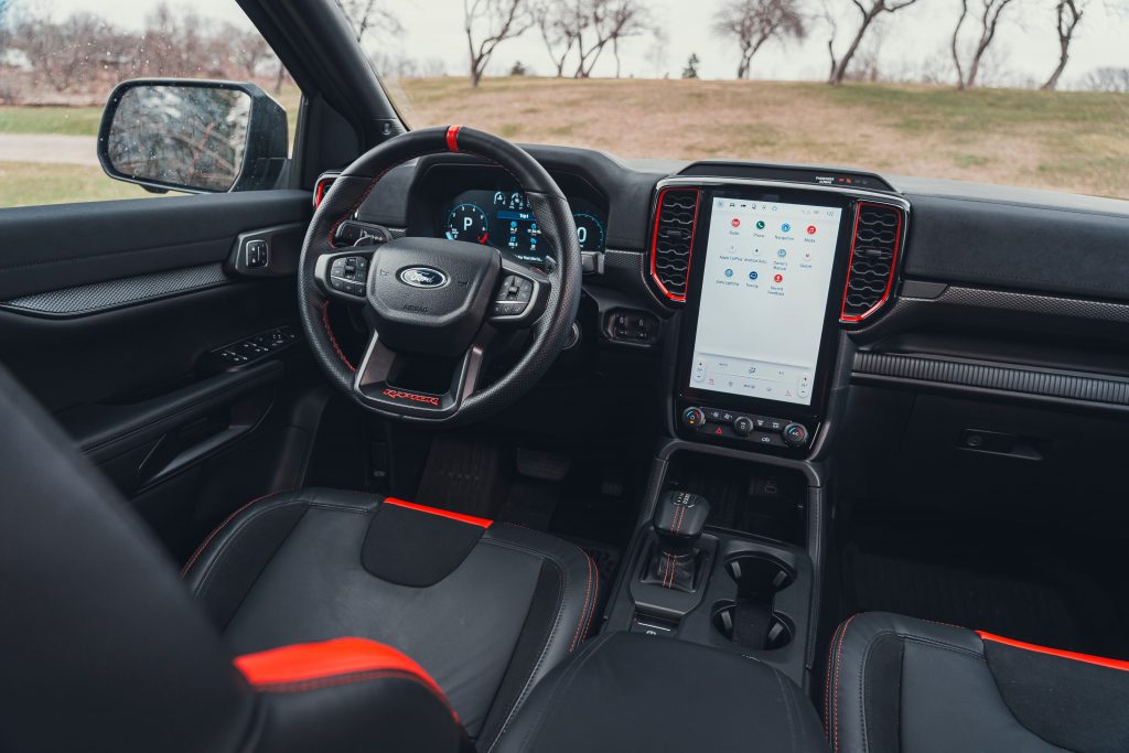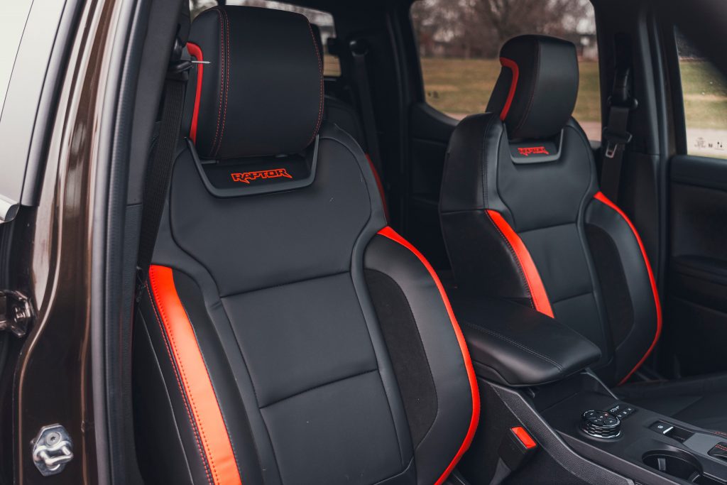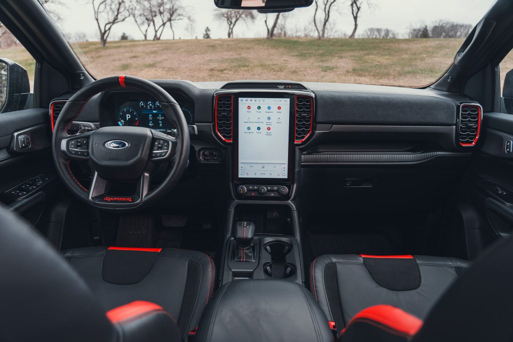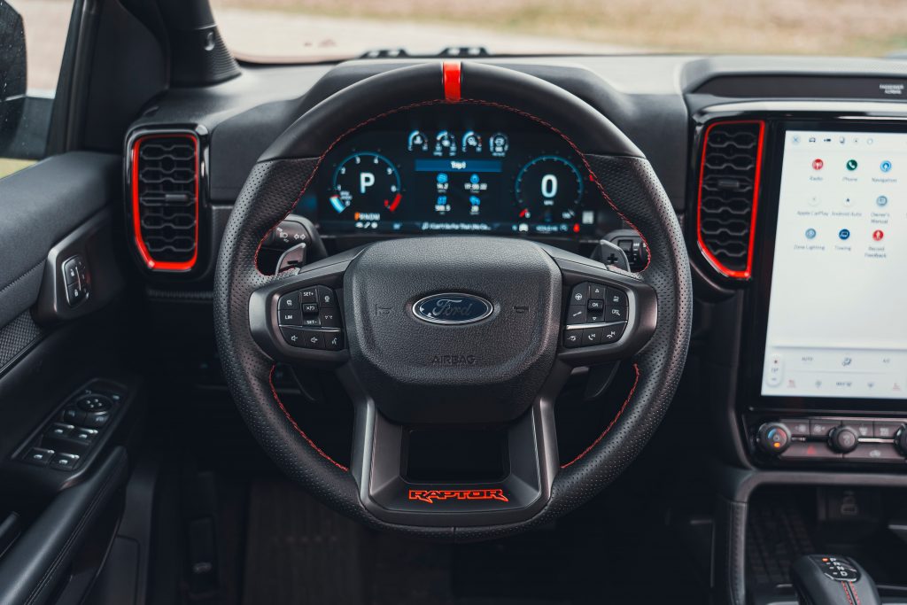 方向盘同样具有鲜明特色。车内采用了平底造型方向盘,不仅在视觉上更具运动感,也为驾驶者上下车提供了更充裕的腿部空间。方向盘后方配备了由镁合金材质打造的换挡拨片,在保证强度的同时兼顾轻量化需求,提升了操作时的质感与响应速度。 值得一提的是,方向盘在十二点钟位置设有清晰的标记线。这一细节在激烈驾驶或越野场景中能够帮助驾驶者快速判断方向盘回正位置,提升操控时的直观性和便利性,也进一步强化了车辆的运动属性。 从整体风格来看,福特Ranger猛禽的内饰在Ranger家族中具有较强辨识度。与普通版本相比,这款车型在座舱氛围和功能配置上明显更偏向运动取向,同时兼顾日常使用的实用性,形成了自身独有的设计风格。 在内饰配色方面,福特Ranger猛禽并未一味追求沉稳。仪表台和座椅上点缀了偏橙色的装饰元素,在整体以深色为主的座舱环境中起到了提亮作用,使车内氛围显得更加活跃,同时避免了长时间驾驶可能带来的压抑感。 文章导航 2026款福特Ranger猛禽外观曝光:全角度展示,配置与外观一次看清2027款保时捷911 GT3 S/C敞篷版亮相:内饰细节全面曝光,豪华座舱与驾驶乐趣并存